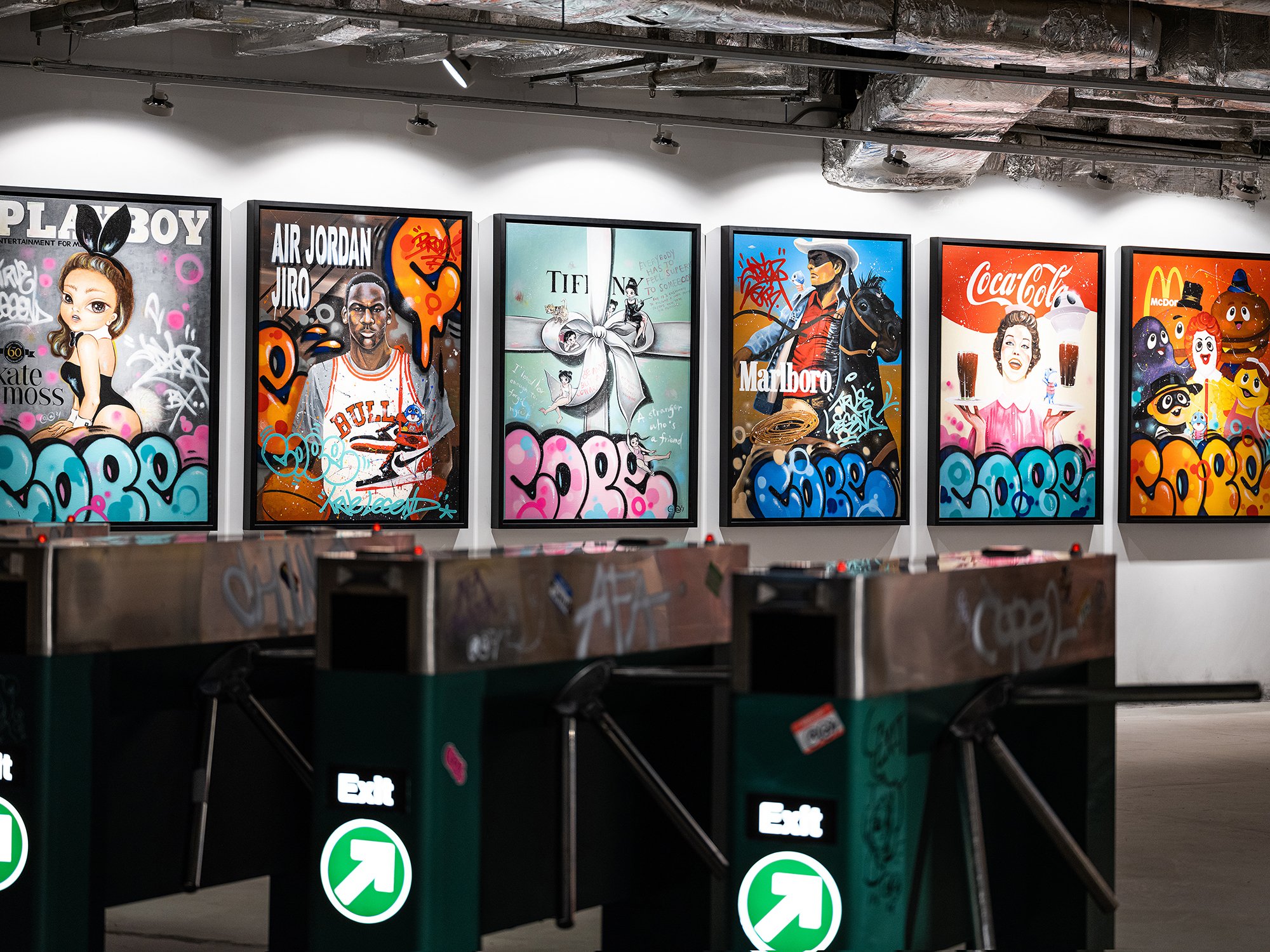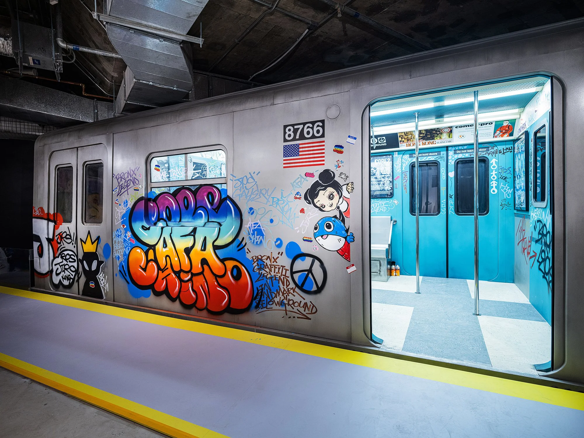 In the collaborative exhibition “Time Travel” (逆時車站), presented by JPS Gallery in partnership with BELOWGROUND at Landmark, Afa joined forces with Chino Lam and street art legend Cope2 to celebrate the enduring impact of graffiti and its evolution into mainstream contemporary art. Drawing inspiration from the 1980s classic film Somewhere in Time, the installation recreated a nostalgic New York subway environment from the late 1980s—a pivotal era when Cope2 dominated the city’s trains and stations with bold, rebellious tags.